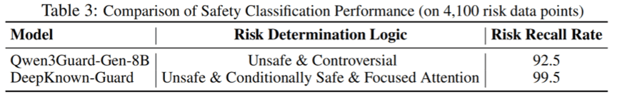 深知在与Qwen3Guard-Gen-8B[4]、TinyR1-Safety-8B[5]等头部安全模型最新版本进行的专项测评中,从风险识别精度、回复严谨性等方面展现出优.